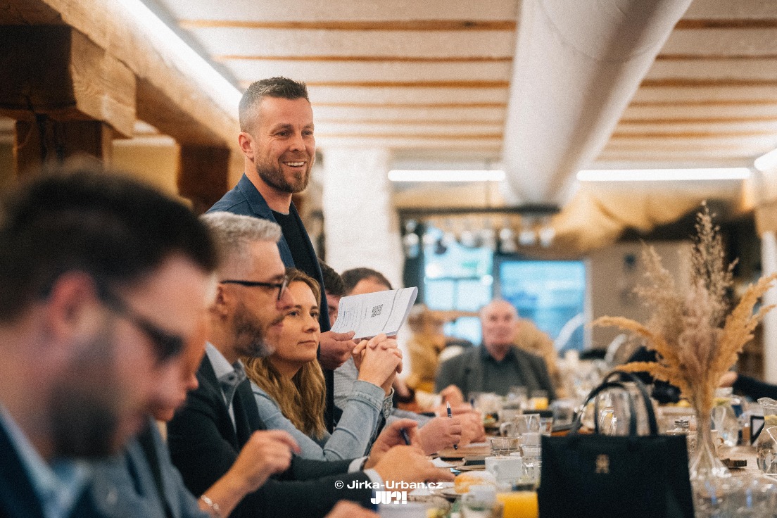 Jarek Mikeš se ve svém vystoupení otevřeně podělil o témata udržitelnosti, efektivity malých firem a kapitálu. Zdůraznil, že rozjet firmu je dnes jednoduché a že fungovat bez kapitálu lze díky vztahům a spolupráci, bez ohledu na věk. Hlavní myšlenkou bylo nesnažit se růst za každou cenu, ale soustředit se na menší, vzájemně propojené byznysy. Delegace exekutivy přináší čas a pohodu, což se pozitivně odráží na zdraví a rodině – hodnotách, které jsou pro nás klíčové. Jarkovi děkujeme za smysluplné a srozumitelné sdílení jeho příběhů.